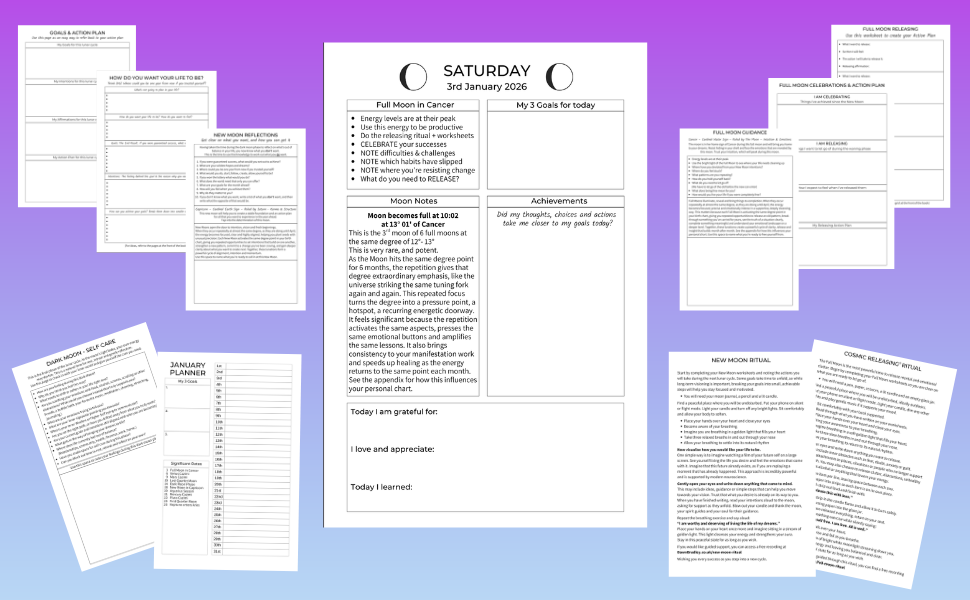 If you’d like to end self-sabotage & procrastination without hiring a life coach, then this is the perfect resource for you. Step-by-step New Moon Worksheets that will help you to identify, set, track and achieve your goals; and Full Moon Worksheets to identify and release what’s been holding you back. When you have an action plan like this, you’re able to break your large goals into smaller achievable steps. Available now for both UK and CET time zones directly from Amazon.